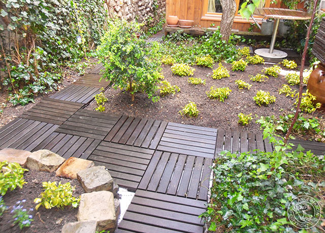 Voici un exemple imagé de pose de dalles en teck (dallage) dans l’allée d’un jardin, à Malakoff, dans les Hauts-de-seine (92)…